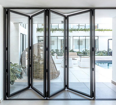Ventana Design Thermal Break Slide and Fold Aluminium Door can be opened completely for a clear view or partially for convenient access. These doors are durable, energy-efficient, and offer improved heat insulation and ventilation to maintain a cool interior temperature. The thermal break slide and fold doors from Fenesta will alter the way you think about doors because they blend in seamlessly with the interiors and exteriors. Ventana Design's cutting-edge line of thermal break aluminium doors offers greater heat insulation thanks to an additional layer of Nylon: Polyamide in the door profile.